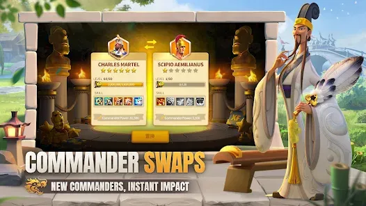 Call upon dozens of historical figures who will serve as your trustworthy commanders, from Julius Caesar and Sun Tzu to Joan of Arc and Kusunoki Masashige. Level up your commanders by defeating barbarians and sending them into battles, then upgrade their abilities using an RPG style talent tree and skill system.